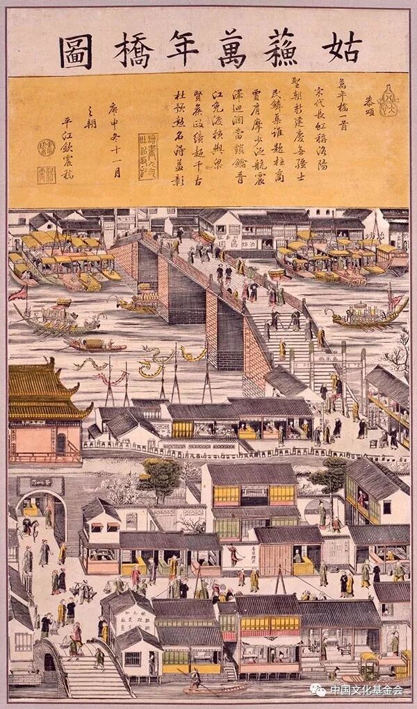 《姑苏万年桥图》,墨版套色,92.3×53.5cm,清乾隆,日本神户市立博物馆藏