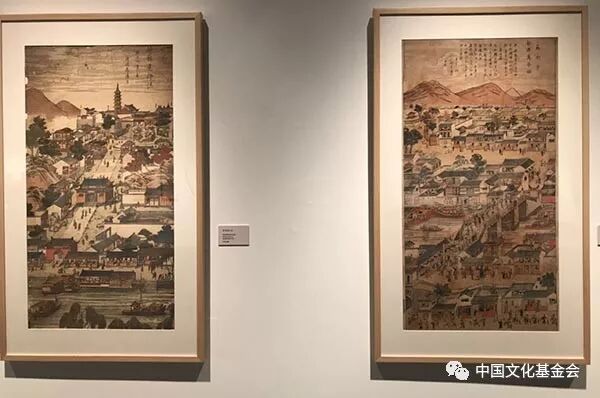 此次展出的作品《姑苏万年桥》是“姑苏版”中最具代表性的作品,也是文献中被明确记载下来被江户时代浮世绘师圆山应举模仿过的作品。姑苏万年桥于乾隆五年(1740年)建于苏州的护城河上,建桥前,百姓过河只能摆渡,极为不便。建桥后,以姑苏万年桥为名的姑苏版作品分别有乾隆五年、乾隆六年、乾隆九年、乾隆十年,四个版本。展览展出的为墨林居士于乾隆六年(1741年) 的作品。