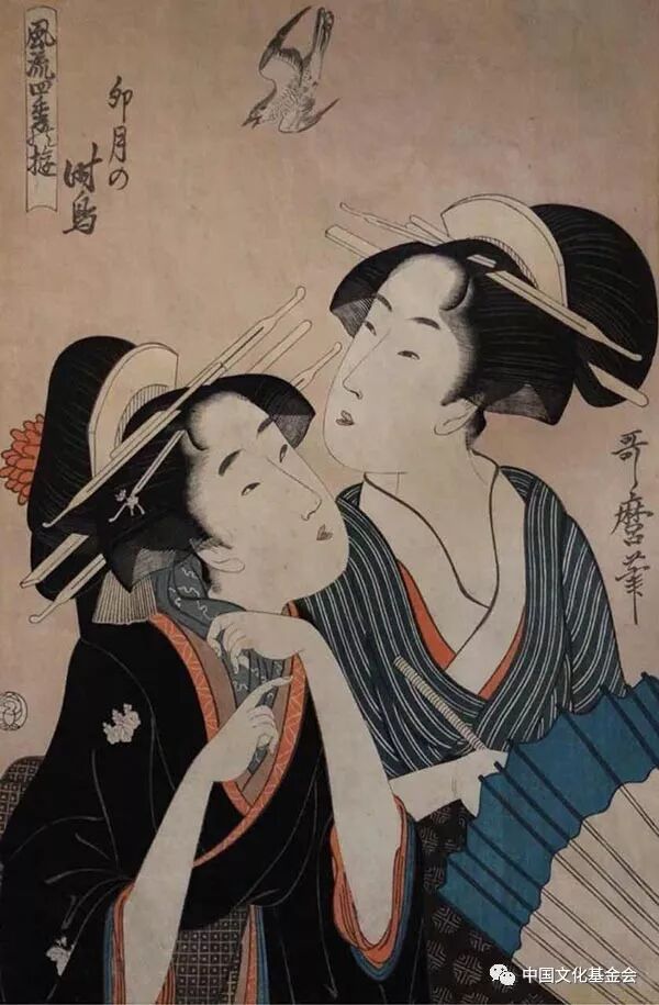 喜多川歌麿 《风流四季游 卯月之时鸟》大版浮世绘,约1793年 (汤黎健藏)