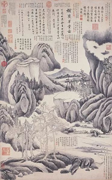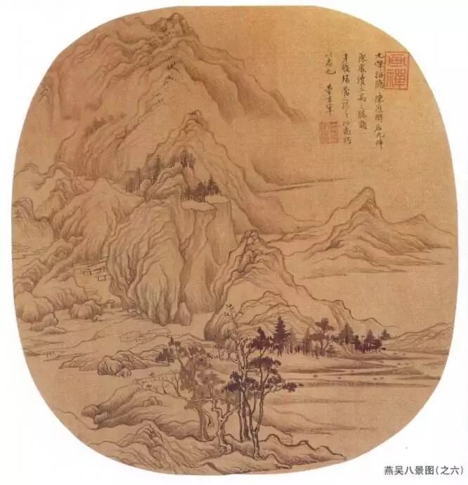 当董其昌(1555—1636)于公元1597年为其师友陈继儒(1558—1639)新近落成的山隐之所创作《婉娈草堂图》时,他也为现代中国绘画奠下了基础。即如石守谦所观察,此图在中国绘画发展史中占据着重要的历史地位,“此画呈现一种全新的风格,或可视为‘董其昌世纪’之肇始”。方闻亦持类似看法,形容《婉娈草堂图》乃是“[自赵孟频(1254—1322)以来]最具创意的画作”。试图分析董其昌1597年年杰作之创新,石守谦指出此画呈现了包括重复的、平直的皴法纹理等数种显著的风格特征。基于对这类相对怪异而又持续的特征之观察,他形容“《婉娈草堂图》之皴法较宋代以来任何其他绘画更为素朴”。石守谦认为这就是董其昌自己所称的“直皴”,为董其昌“用来制造构图中每一个造型单元取势之动能”。石守谦对于直至《婉娈草堂图》为止之皴法发展史的细心分析,清楚地显示这项技法是多么激进地不同于所有先前绘画的技法。方闻则评述:“《婉娈草堂图》可见一种激进的新颖结构……以直皴建构之立方体似的石块形式……[意味着]绘画全新的质量与形体(mass and physicality)。”《婉娈草堂图》其他方面的创新同样史无前例。其一是强烈的明暗对比,如雕如塑地制造出方闻所谓的的“质量与形体”。其二是高低不齐等之地平线。其三则是朝着不同方向倾斜的地面,这些块面存在于高低不同的地层,似乎将要坍陷于构图的中央。寻求对董其昌艺术新风格灵感泉源之解释,方闻、石守谦以及许多其他学者将注意力放在董其昌1597年期间所努力研习的中国古画传统。例如,董其昌在这段时期热烈地追求所谓王维遗风,而且就在这段时期寻获一幅传为“王维”最重要的作品之一:《江山雪霁》图卷。正如方闻、石守谦以及许多学者所公认的,这幅图卷对董其昌的绘画风格与艺术理论之演化发展起了强大的影响作用。与此同时,造访陈继儒婉娈新居之前,董其昌在杭州一直积极地研究当时著名的郭忠恕(?—977)作王维《辋川别墅》摹本。传董源(?—约962)《龙宿郊眠图》巨幅亦在此时为董其昌所获,学者公认董其昌《婉娈草堂图》前景树木的样式,是多么直接地从这幅董源风格作品中借得。董其昌又新近获得了李成(919—967)、郭熙(约1020—1090)、王诜(1036—1093后,一作1048—1104后)等大画家的作品,以及重要的董源《潇湘图》手卷。更在绘制《婉娈草堂图》前几天,获观黄公望(1269—1354)传世煊赫名迹《富春山居图》。上述所有这些古代绘画杰作,对董其昌这段时期所追求的崭新画风,都有显著的作用。的确,董其昌在1597年阴历十月于陈继儒处为其草堂画像作为送别礼物之前大约短短一年之中,所努力亲眼观察、研究学习之重要古画杰作的庞大数量,见证了在董其昌生命关键时期驱策他的、对绘画艺术永不满足的饥渴与热情。毫无疑问,董其昌所亲见的这些古画经典作品,必然与笔者即将要辨识探讨的另外一些文化元素,在董其昌不知疲倦、充满旺盛企图心、好似坩埚熔炉一般的头脑中共同而谐和地发挥作用,产生出现代中国山水画原型《婉娈草堂图》试图了解董其昌绘画风格如何在16世纪末期发生转变,一个意义重大的转折点乃是作于1596年、现藏上海博物馆之《燕吴八景》册。这套册页绘制于该年阴历三月与四月,大约是《婉娈草堂图》创作前18个月,可能董其昌心中已念及陈继儒。