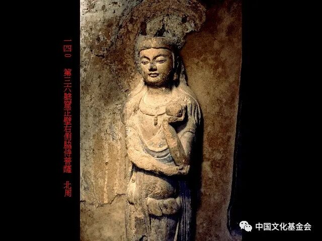 最后再说说佛,第44窟佛像是西魏佛像中最精彩的,慈祥睿智,普度众生,“秀骨清像,褒衣博带”,也属陆探微样式。与北魏佛相比,北魏是直线造型,西魏是曲线造型,西魏比北魏更加柔美,更加世俗化。类似西魏佛像还有第20窟佛像,也属陆家样。