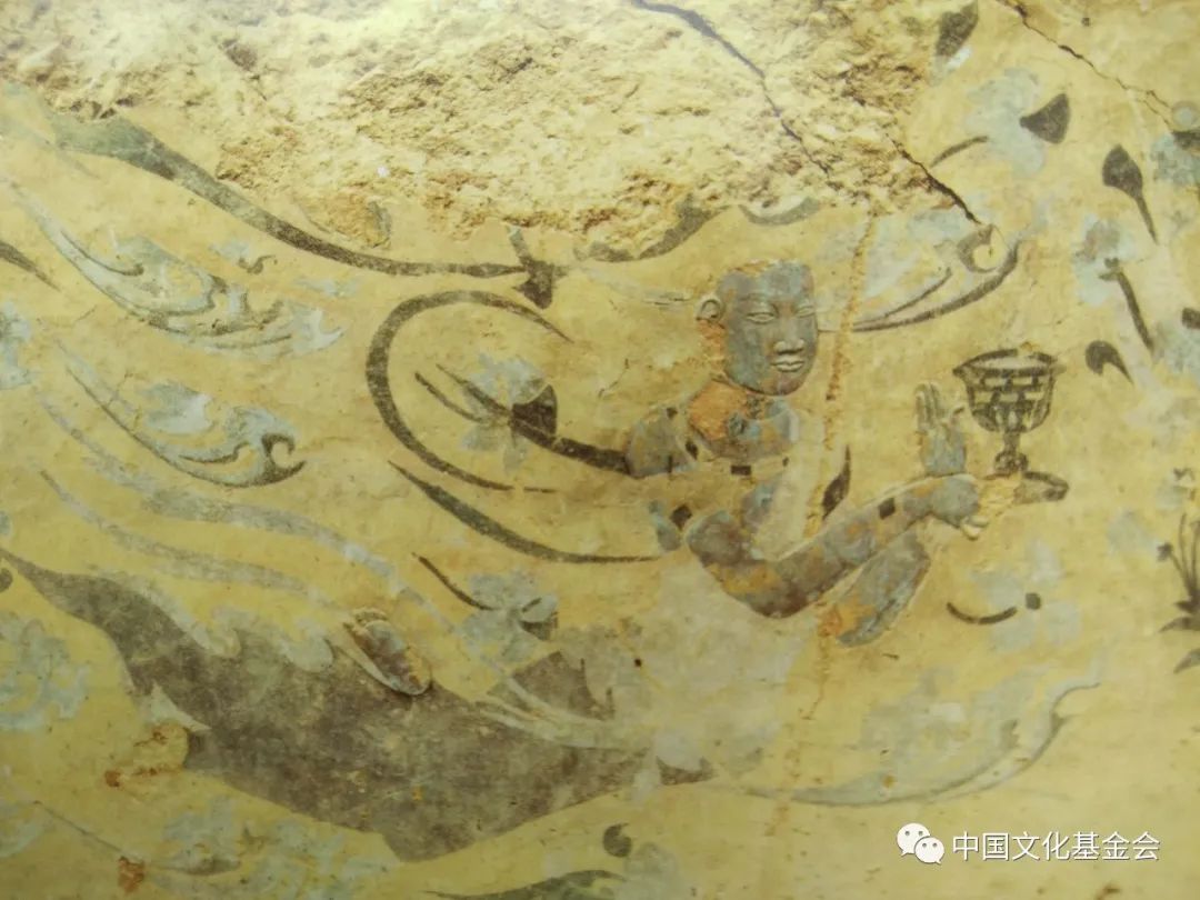 第4窟有北周壁画《飞天》,飞天圆脸丰腴,脸、手等肉体部分微微凸起,是很浅很浅的浅浮雕,其他全是彩绘,是浅浮雕与彩绘相结合,这种做法绝无仅有,极为罕见,看来北周人喜欢立体感。其实如上所述北周学北齐,北齐学南京张家样,张家样就讲究立体感,张僧繇用天竺(印度)画法画“凹凸花”。可见印度——南京——北齐——北周,一脉相传。