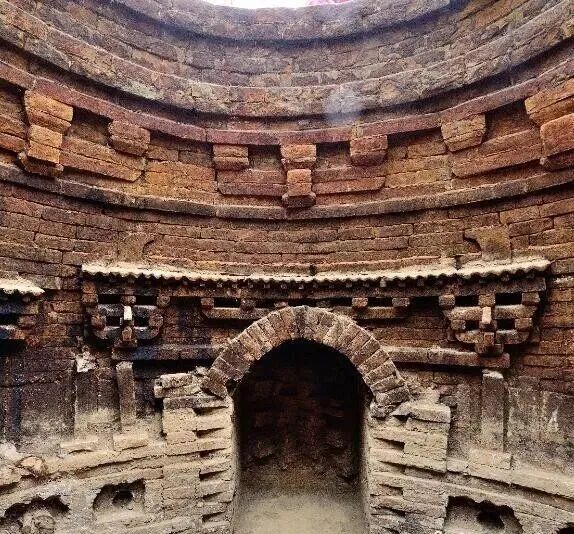 据工作人员介绍,该墓室呈圆形,顶已经被挖开。透过挖开的墓室,可以看到墓壁四周有精美的仿木砖雕,墓底还有墓主人的骸骨。考古人员在古墓现场未发现墓志铭或能够证明墓主身份的证据。