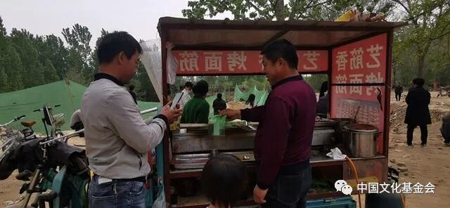 41岁的时庆献来自邻村,他平常赶会赶集烤面筋。疫情期间,集会取消了,他听说这里人多,就赶来这里摆个摊。他说自己每天9点就会赶来,晚上天黑没人了才回家,一根两元的面筋,他最高时可以每天卖到700元,“不错,真得还不错。”他用“成千上万”来形容来围观的群众数量,“就是人非常非常多”。本属小众的古墓发掘,缘何在短时间内,来自全国的网红直播为此打卡?