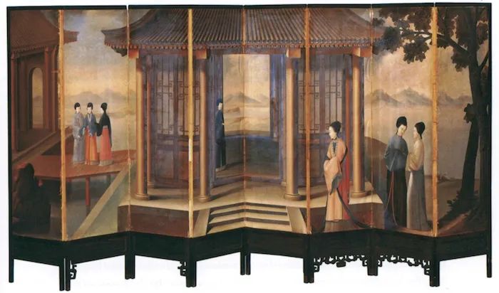 北魏司马金龙墓出土的漆画屏在正反两面上都绘有人物叙事画,但正面的题材为列女,背面所绘的内容则为古贤、高士和孝子。在这个例子中,屏风的正反面与“男女”“内外”等二元观念构成对应关系。另一个非常有意思的例子是故宫博物院收藏的一个康熙时期的小型屏风,一面上画有一幅画是“最早的中国油画作品之一”,描绘江南水榭之间的一组仕女;另一面则是康熙皇帝临董其昌书的晋朝诗人张协的《洛禊赋》,描述的也是南方景象。把两面屏风放在一起分析,我们可以发现它们之间的复杂关系和对一种特殊“女性空间”概念的建构。