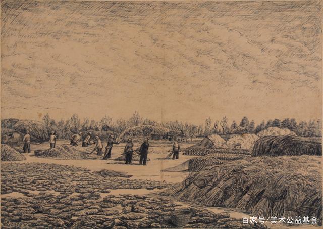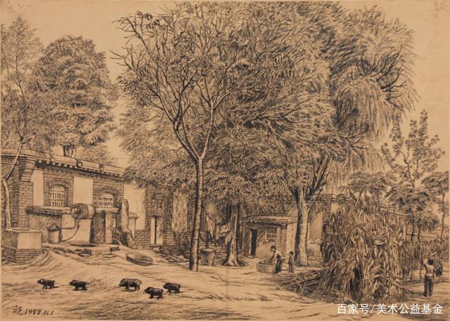 1957年,他为庞薰琹的不公待遇仗义执言,结果被送到校劳改队改造。1970年下放到河北获鹿县李村劳动。1972年政策开始宽松缓和,艺术家们被允许创作,甚至可以放假回京。这期间,祝大年先生创作了一批反映农村风物的钢笔画。画钢笔画,是因为条件所限,因为工笔重彩画,需要太多的材料。
