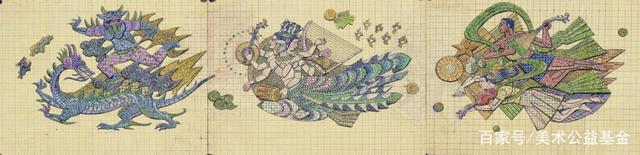 他学习传统(古今中外的装饰传统,尤其敦煌壁画、宋元明壁画),但又不拘于传统。每幅壁画都有写生稿、创作稿、构图稿、线描稿、局部特写稿、色彩稿等。