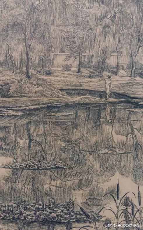 画中的垂柳,如今依然摇曳,这张二十世纪七十年初期的钢笔画,如今已是团结湖公园弥足珍贵的艺术旧影了。