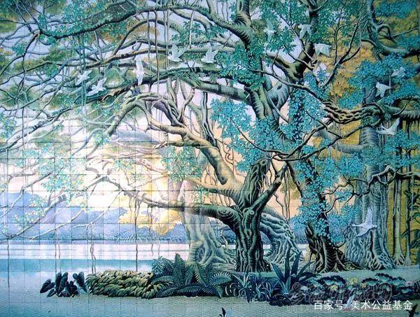 1979年 为首都机场创作陶瓷壁画《森林之歌》。