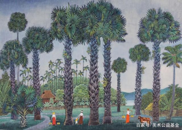 他将中国传统图案写生、变化的创作方法引入壁画中,使他的壁画既写实又装饰。在整体处理上,从繁到简,可以远观;在局部处理上,从简到繁,又可近看,而且还耐看,能经得起这三看的画不多。他的画既细致又概括,可谓“致广大而尽精微”。