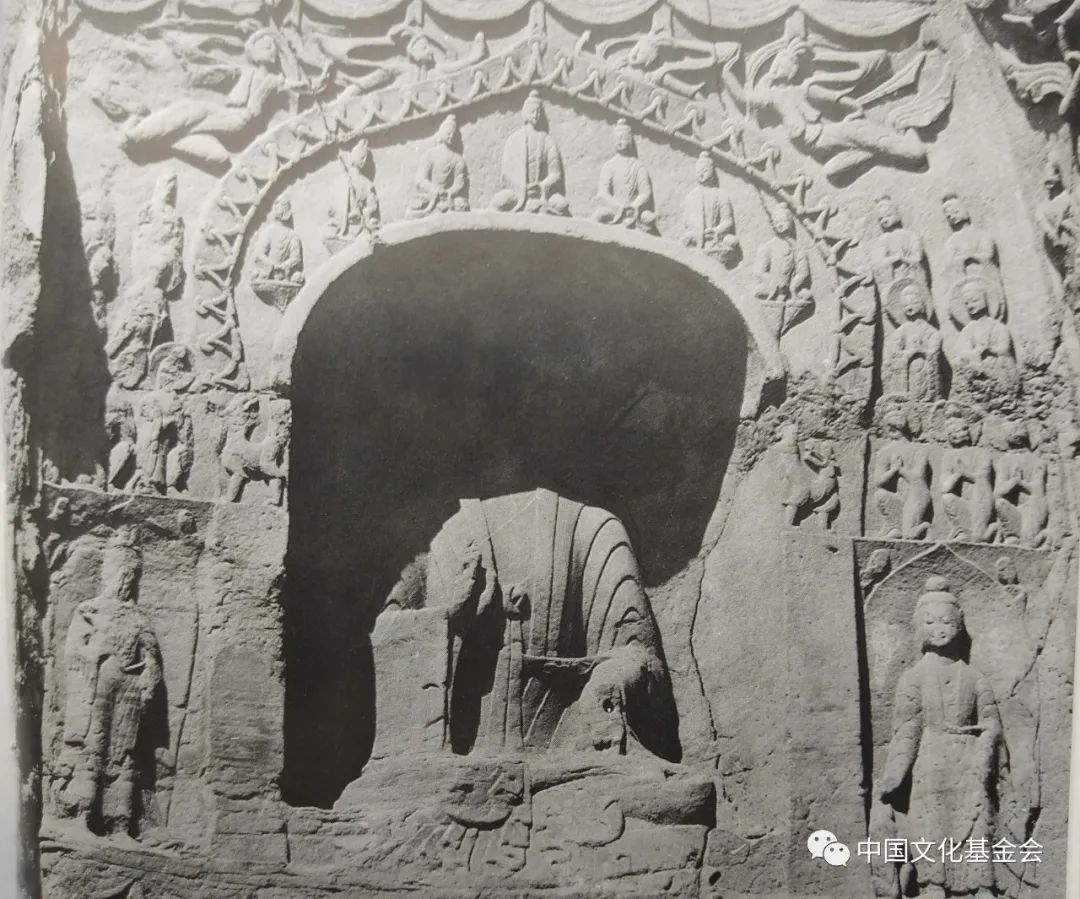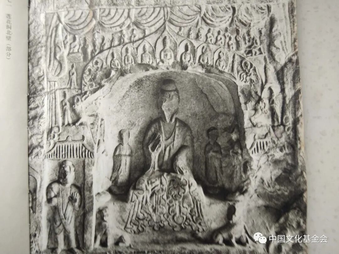 宾阳中洞窟顶浮雕莲花、飞天,洞口内侧两壁从上到下浮雕四层,分别为《维摩诘》、《本生故事》、《帝后礼佛图》(现藏美国,极为精彩)、《十神王》,龙门浮雕,下面再谈。