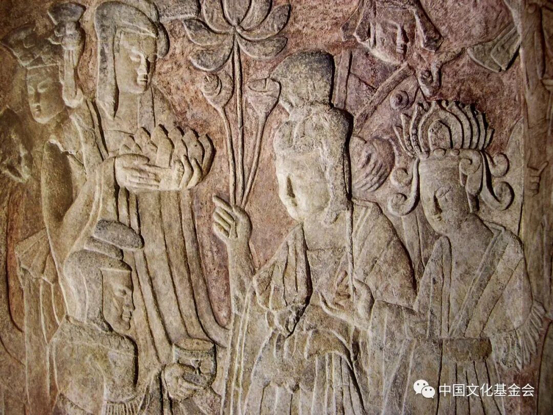 龙门莲花洞浮雕《佛传故事》也很精彩,表现太子在树下思维,上有飞天祥云,有两幅,一是拒绝王位,一是拒绝回宫,人物(包括飞天)皆清瘦飘逸,“秀骨清像”,明显受陆探微陆家样影响。(未完待续)